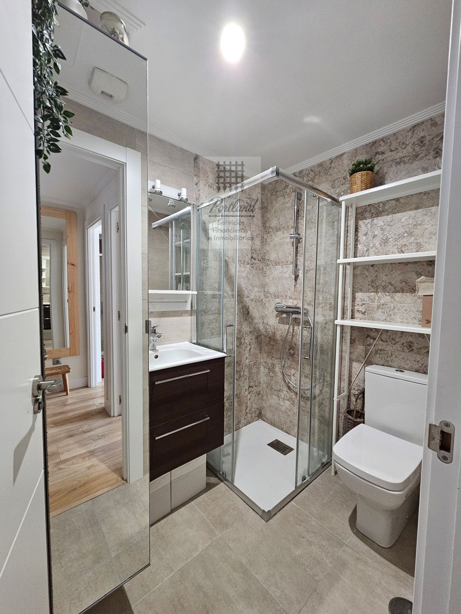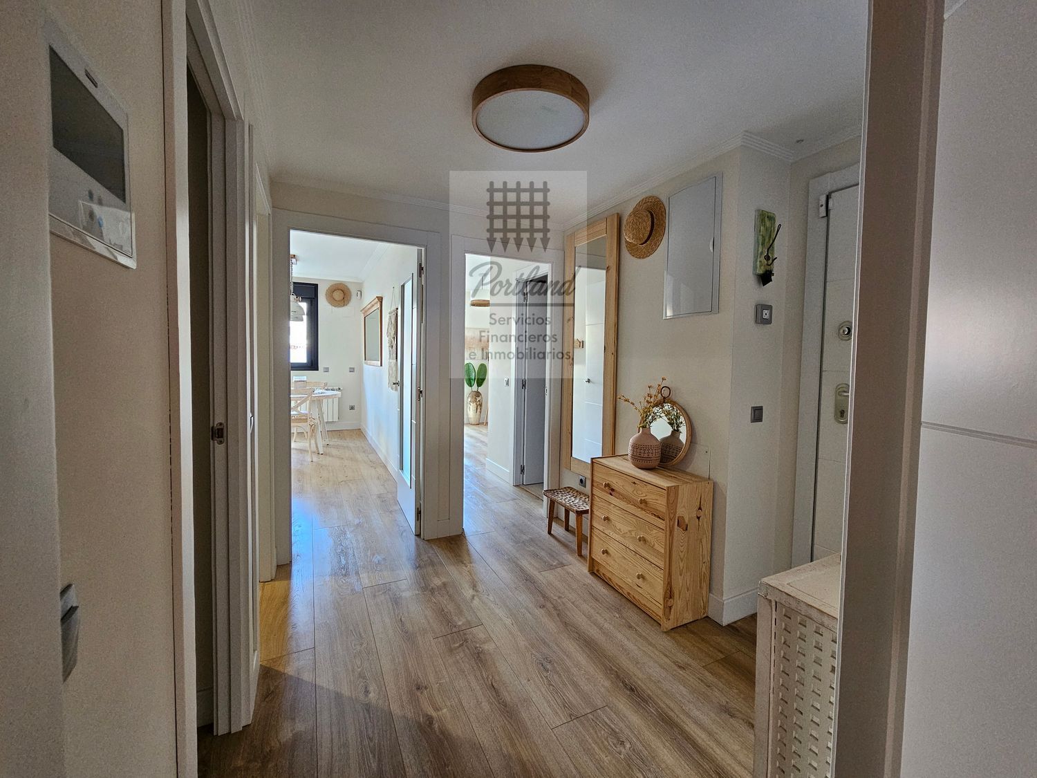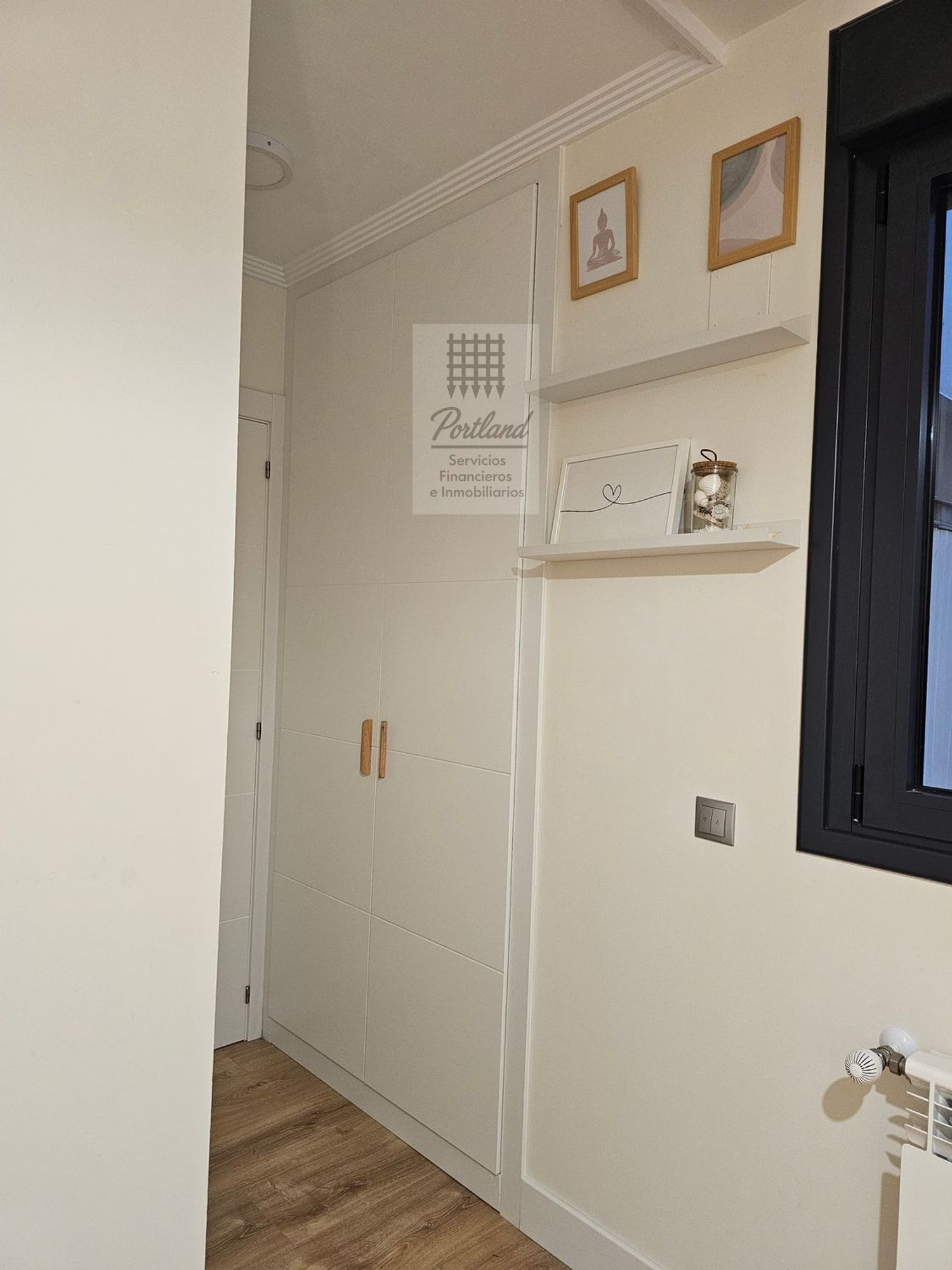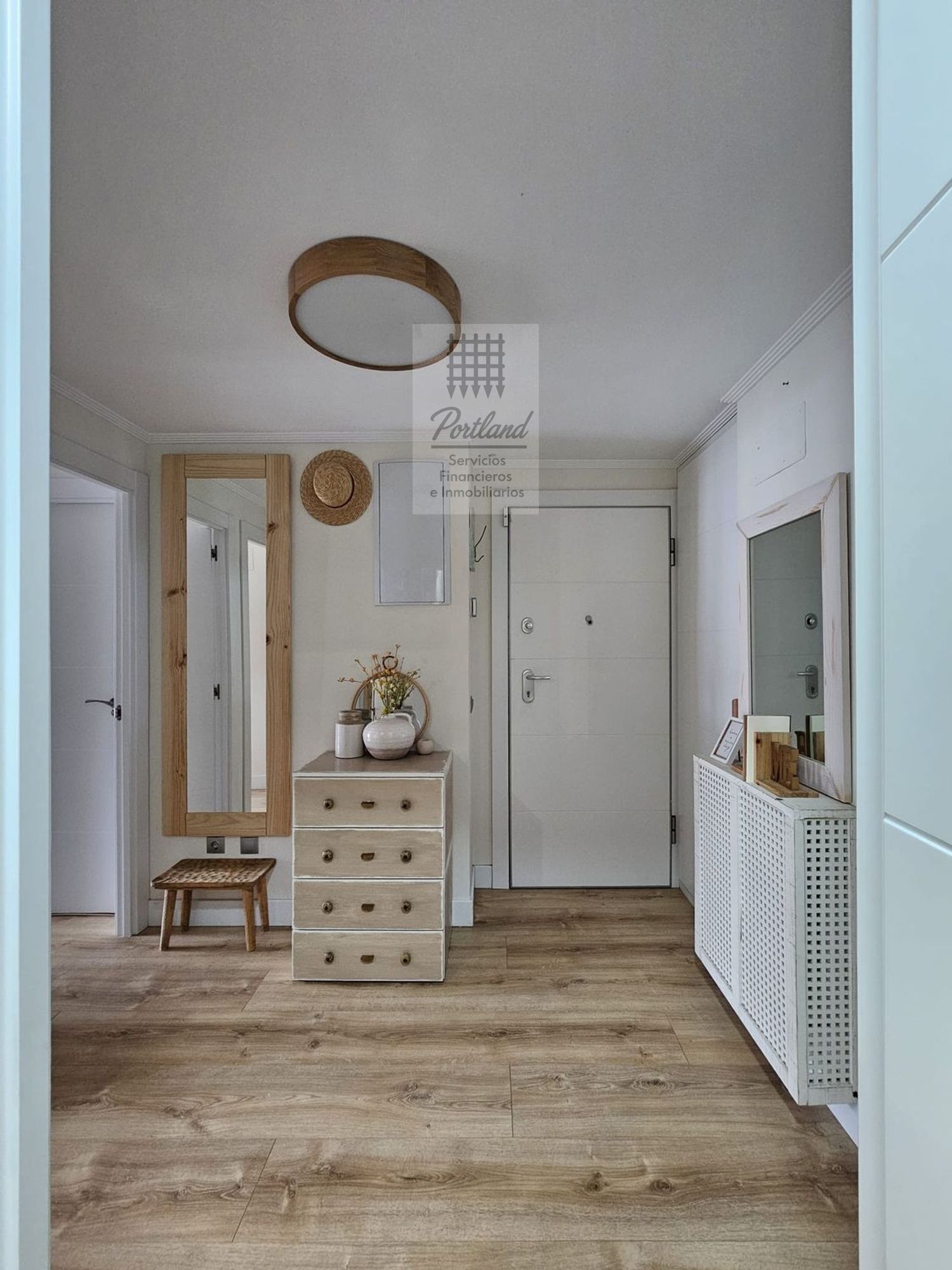 Hall de entrada que aprovecha al máximo el espacio y organiza la vivienda con elegancia, con armario empotrado a medida.